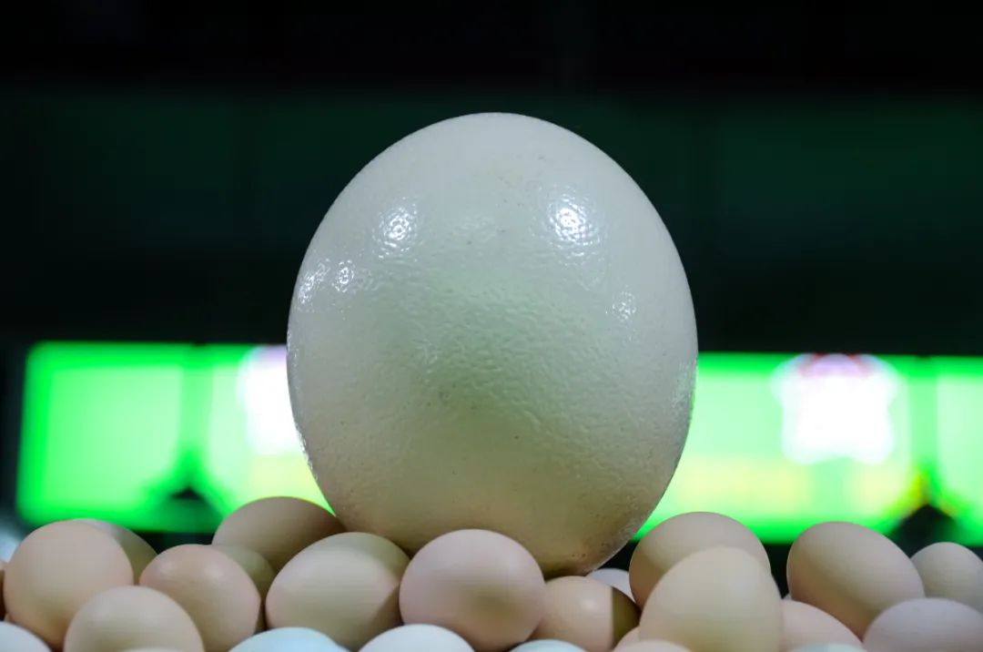 “去年,我儿子用鹅蛋拿了小区冠军,今年我们准备挑战鸵鸟蛋!”在江北白沙菜市场,李女士“豪掷”百元购买了一枚鸵鸟蛋,引得周围市民纷纷侧目。